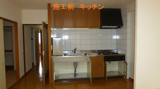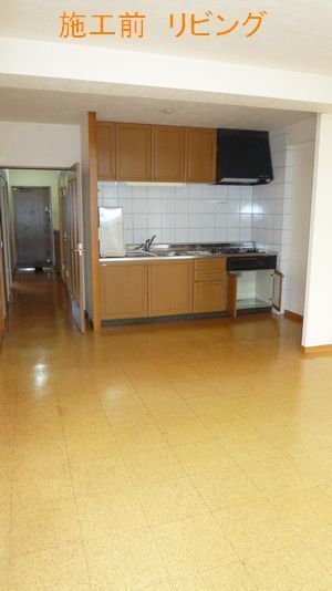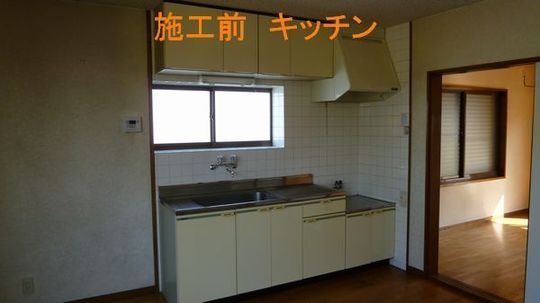 工事内容は、床(フローリングとクッションフロアー)・クロスの貼り替え、お部屋の統合、キッチンの交換、建具工事とウォシュレトの取り付けですが、ここではキッチン交換の施工写真を紹介します。