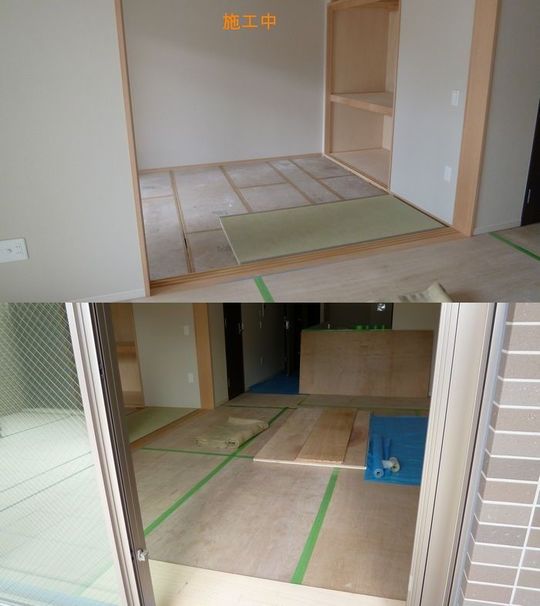 | 写真2 施工中1 畳をめくると下地が見えてきました。 |